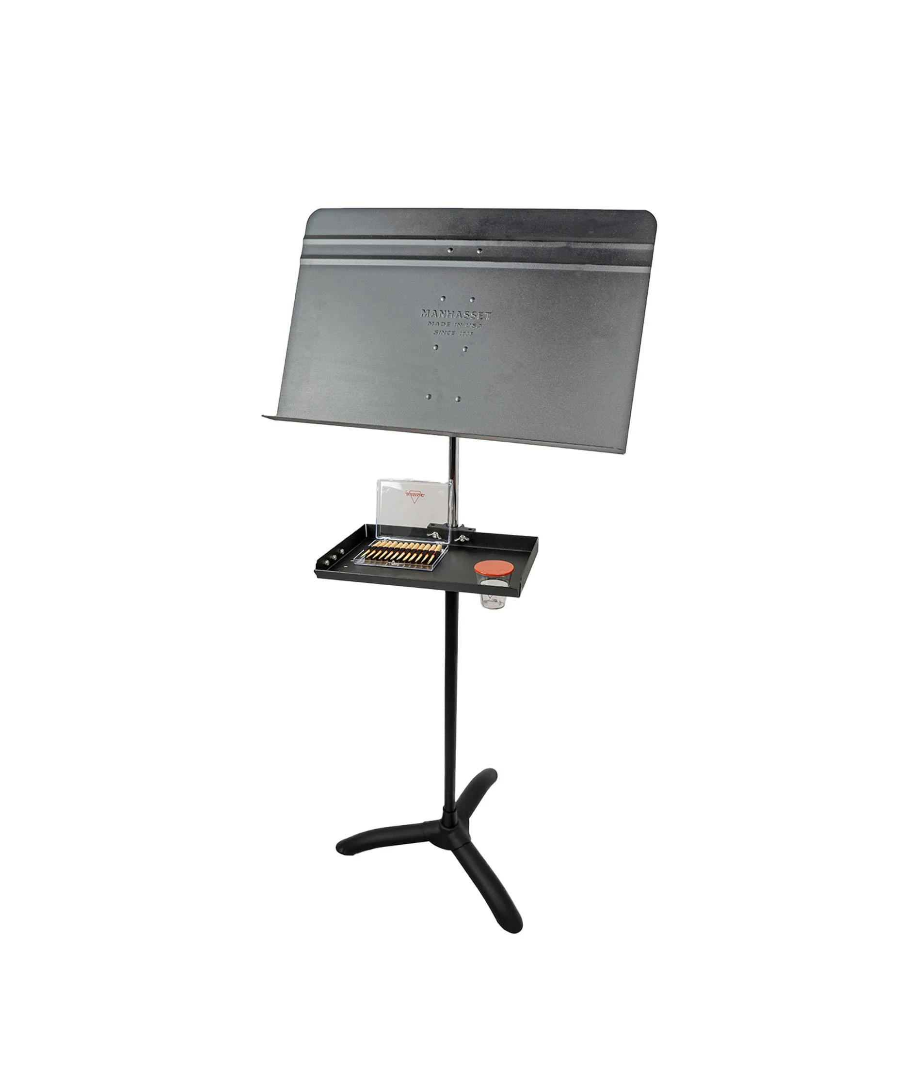 The A310 Music Stand Tray for woodwind players can be used by anyone in the orchestra, but is specially designed for woodwind players who utilize soaker cups and reed tools.